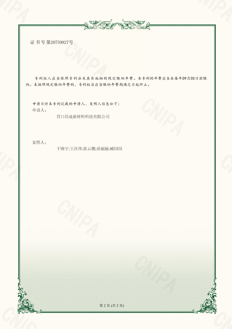營(yíng)口昌成新材料科技有限公司 版權(quán)所有(C)2021?網(wǎng)絡(luò)支持?中國(guó)化工網(wǎng)?全球化工網(wǎng)?生意寶?網(wǎng)盛建站?著作權(quán)聲明 遼ICP備2021005949號(hào)